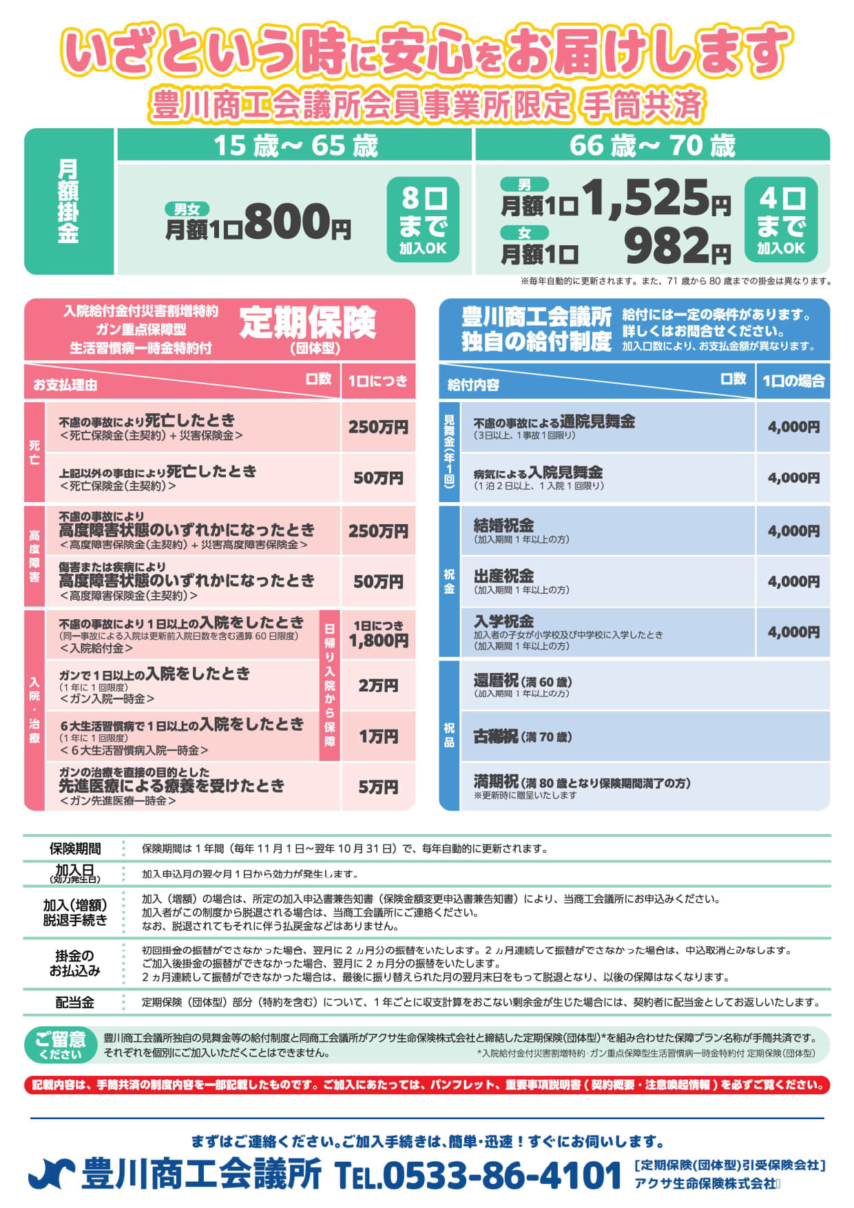 商工会議所では、会員企業の福利厚生制度(退職金制度や弔慰金・見舞金制度、リスク対策や事業承継など)を、共済制度や各種保障プランでサポートしています。また、経営者・従業員の皆様向けの個人の自助努力による医療保障、生活保障などのニーズにお応えする各種プランもご用意しています。