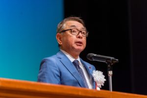 第1部式典では小野喜明会頭が、「このたび4期目の会頭に再任され、改めて身が引き締まる思い。豊川商工会議所のさらなる発展と地域経済の振興のため、誠心誠意、職務に邁進する所存。来年11月の、「豊川稲荷午年御開帳」、令和12年の本殿開創百年「大開帳」を豊川、東三河の魅力を発信する絶好の機会と捉え、地域全体で盛り上げていく。またイオンモール豊川の豊川商工会議所が運営に参画している豊穣屋を、豊川の特産品を全国に発信する拠点として、また新たなビジネスチャンスを生み出す場として引き続き運営していく。豊川商工会議所は、きめ細やかな経営支援、人材育成など、多岐にわたる事業を展開し、会員企業の持続的な成長を支えていく」と式辞を述べました(=写真)。